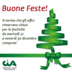 Auguri di buone Feste Scritto il 14 Dicembre 2022. La Cia Emilia Romagna ricorda che gli uffici saranno chiusi per le festività dal 27 al 31 dicembre compresi.