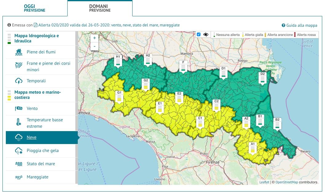 La Regione Emilia Romagna ha emesso una ‘allerta meteo‘ per precipitazione nevose.