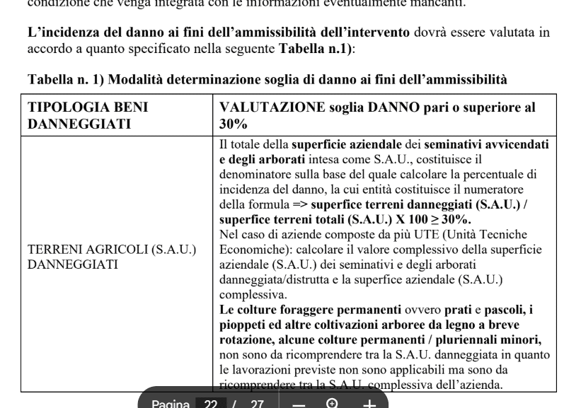Fino al 23 aprile 2025 si può fare domanda per accedere alla Misura 23 del Psr 2014-2022 relativa al “Sostegno temporaneo eccezionale a favore di agricoltori particolarmente colpiti dalle calamità naturali” per il ripristino dei danni subiti dal potenziale produttivo agricolo per effetto delle calamità naturali verificatesi nel settembre-ottobre 2024, per le aziende ricadenti nei territori delimitati: